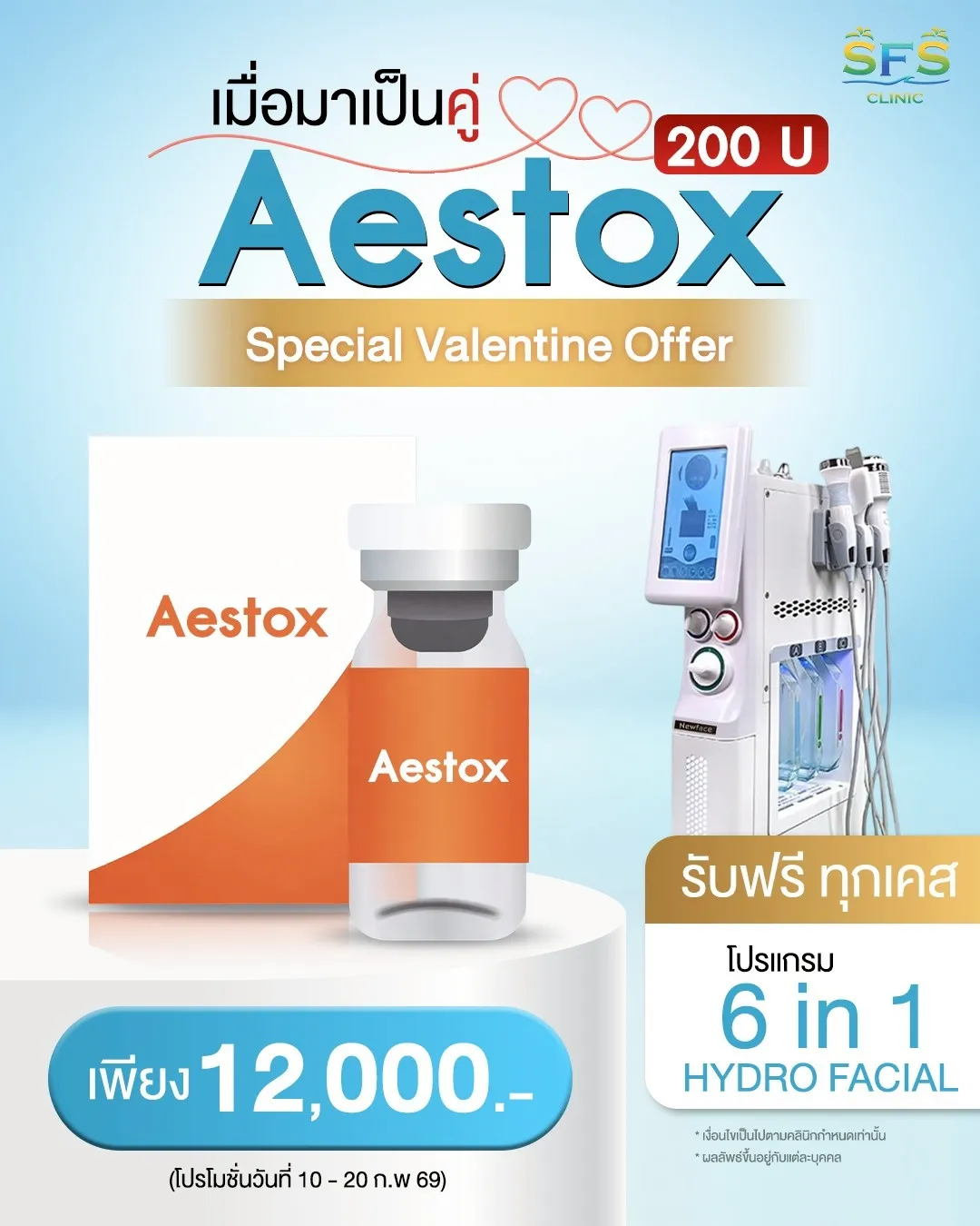Aestox – Special Valentine Offer เมื่อมาเป็นคู่ 200 U Aestox Special Valentine Offer โปรแกรม 6 in 1 HYDRO FACIAL เพียง 12,000.-
